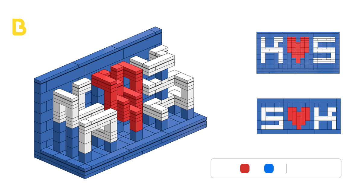 Choose two words and we get your personalized 3D illusion Lego® set. The front view shows you the first word, and the top view shows you the second one. It’s beautiful, colorful, fun and design …