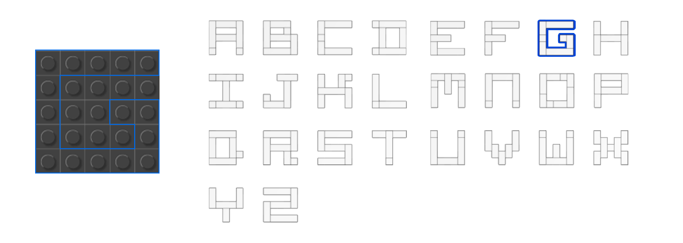Every letter was imagined and created on a base of 5x5 lego bricks.